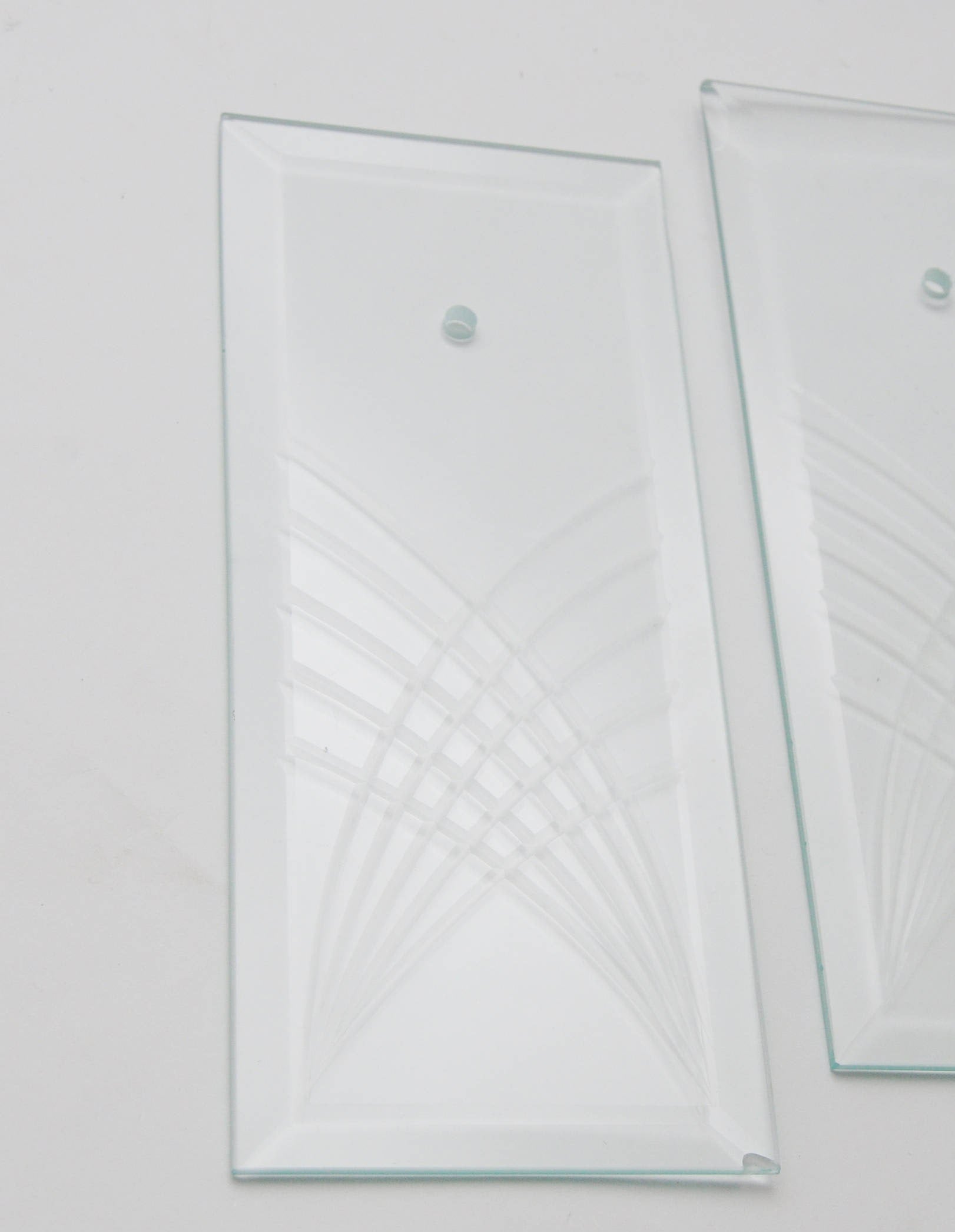 DISCOUNTED Rectangle Beveled Glass Panels-Damaged- Etched Curved Lines Chandelier Panel Replacements-Chips-Defects