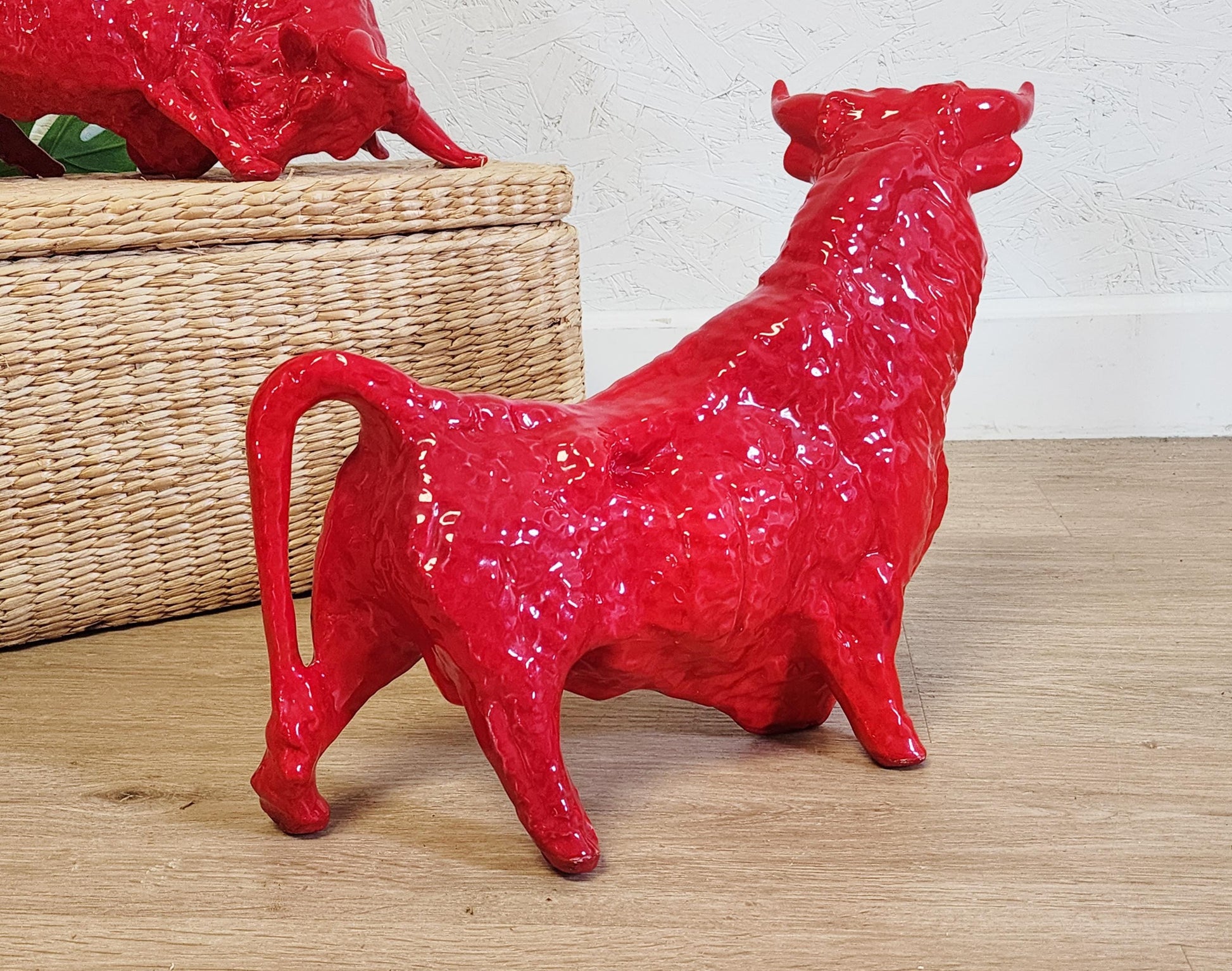 MCM Red Ceramic Bull-Choice of Two-Vintage LARGE Royal Haeger Style Charging Bull, Standing Bull Art, Red Sculpture EXCELLENT