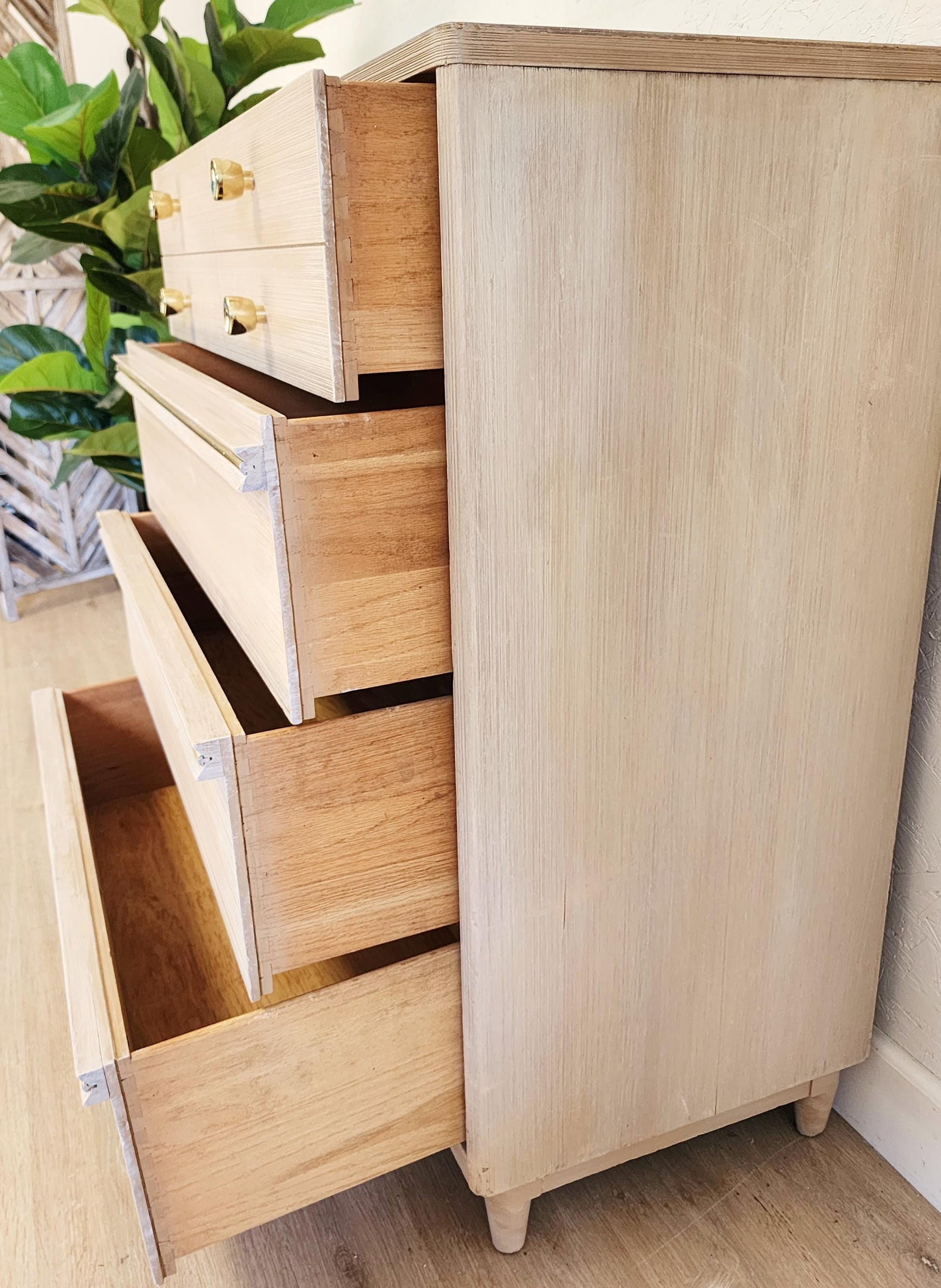 Mid Century Modern Kroehler High Boy-Blonde Ceruse Retro Tall Chest-Refreshed Beach Coastal Modern Bedroom Storage Entry Console