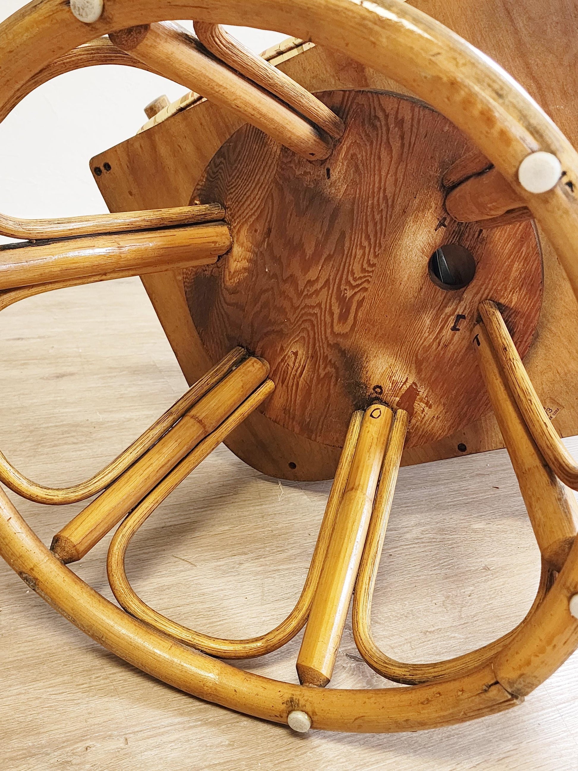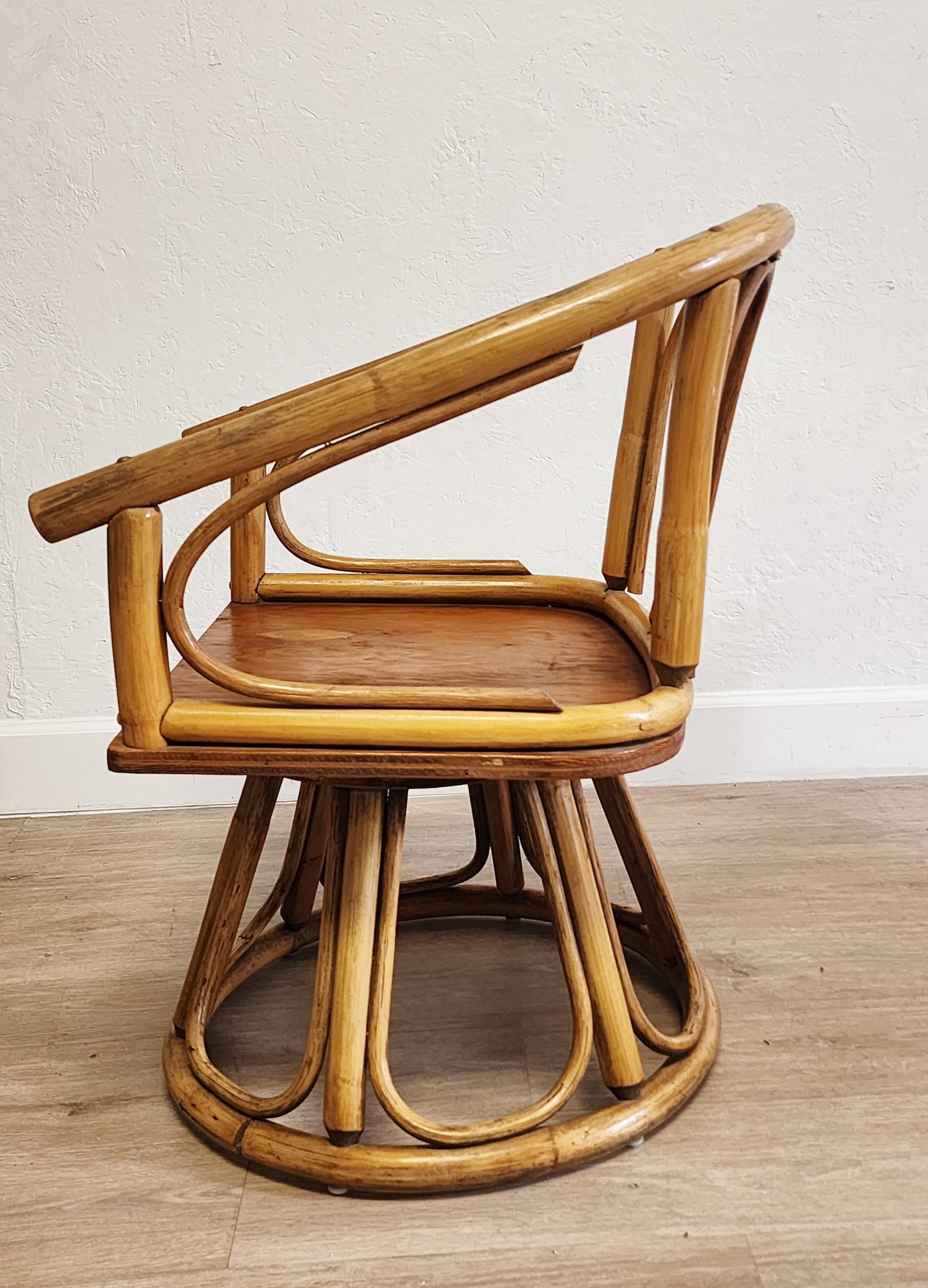 Vintage Tiki Rattan Swivel Chairs-Pair Bent Rattan Coastal Side Chairs-Boho Retro Bentwood Seats